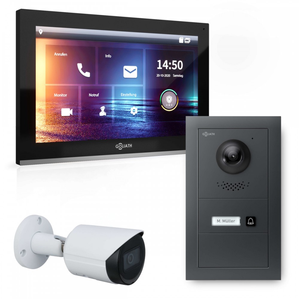 Der Austausch Ihrer herkömmlichen Klingel oder alten Türsprechanlage war noch nie so einfach. Mit der Goliath Hybrid Video-Türsprechanlage genießen Sie modernste Technologie: Sehen Sie Ihre Besucher, sprechen Sie mit ihnen und öffnen Sie die Tür bequem per Fingertipp.