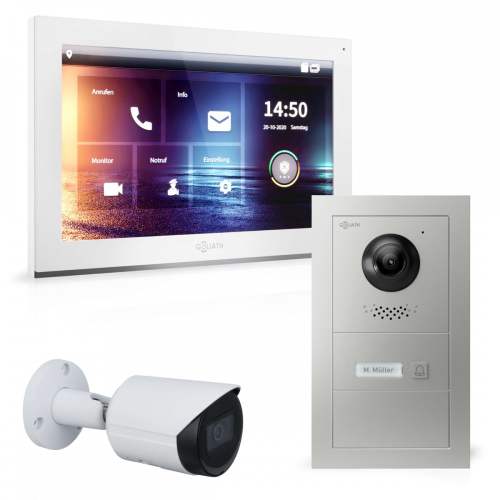 Die Goliath Hybrid Serie überzeugt durch eine unkomplizierte Installation: Ton, Video und Strom werden über ein einziges LAN-Kabel für Tür- und Innenstation übertragen. Dieses Set ist ideal für 2-Familienhäuser und lässt sich flexibel mit weiteren Türstationen, Innenstationen oder Überwachungskameras von Goliath erweitern.